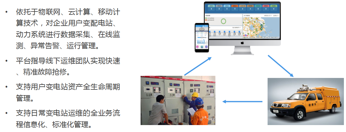 系統(tǒng)完備的設(shè)備臺(tái)賬、運(yùn)行記錄、故障信息幫助快速診斷故障、組織備品備件、完成搶修,恢復(fù)供電。同時(shí)系統(tǒng)提供“集控中+APP+專家坐席”多種方式,支持便捷的專家服務(wù)對(duì)接,為用戶提供有效的專業(yè)技術(shù)保障。